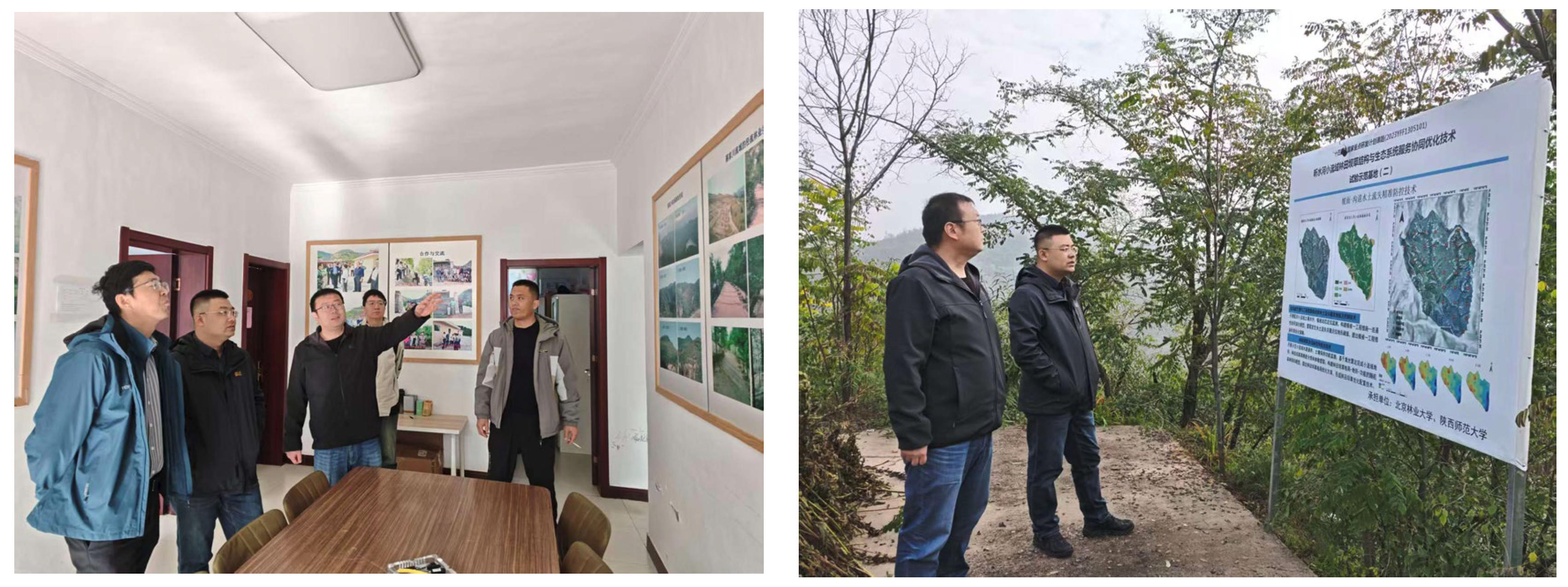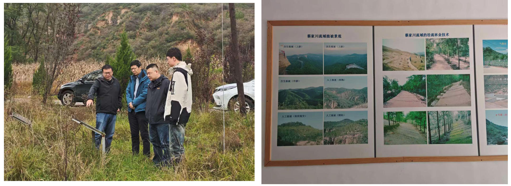 吉县站王副站长对考察组的到访表示热烈欢迎,吉县站团队首先深入吉县站蔡家川核心观测区,重点调研了黄土高原特色的嵌套流域森林水文生态效益试验场。在7个不同土地利用/覆盖类型的试验流域现场,详细查看了降雨径流长期自动观测系统、泥沙采集设备的运行机制,以及坡面径流小区的观测设计方案,对吉县站构建的“流域-坡面-样地”三级监测体系进行了系统学习。